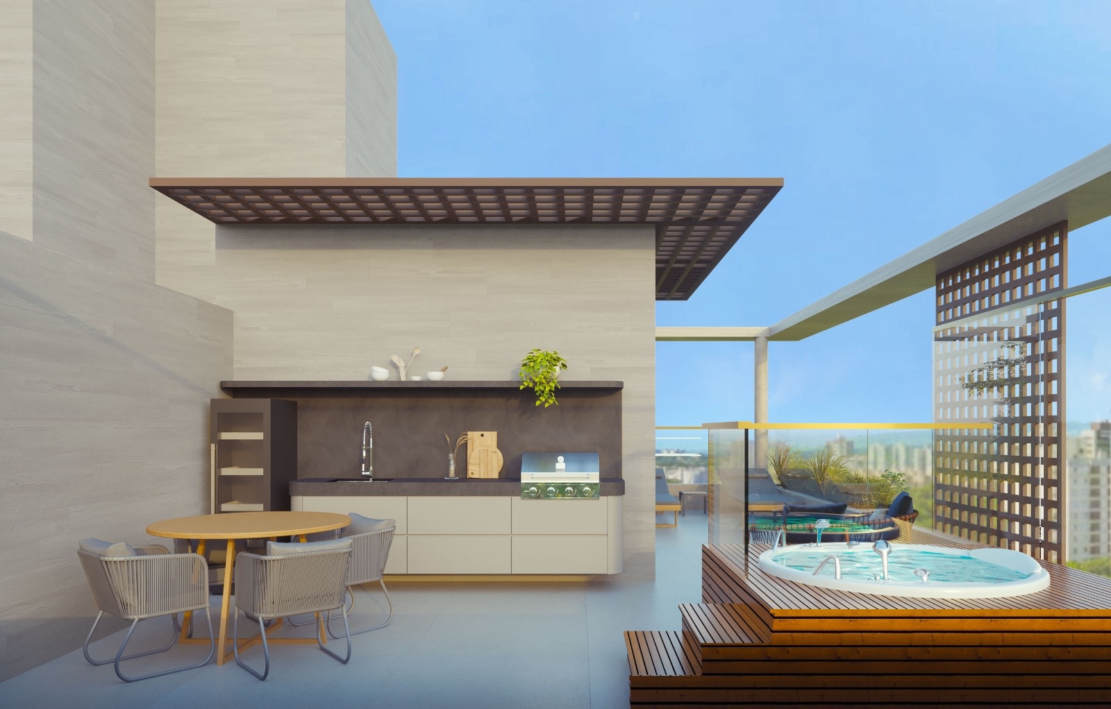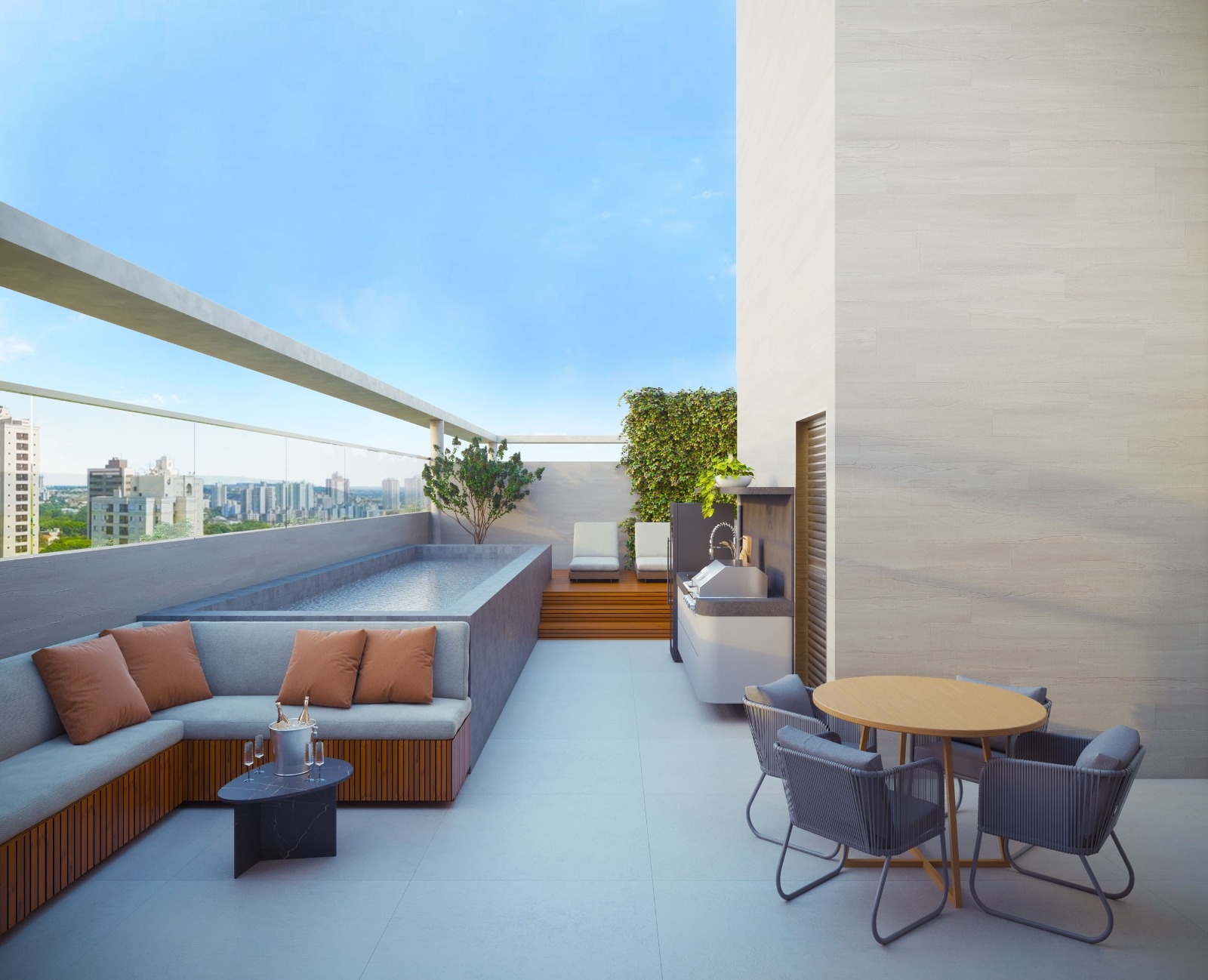 Lazer na cobertura com piscina